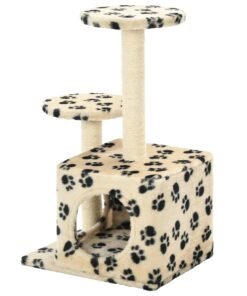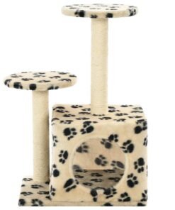 Arbre à chat avec griffoir en sisal 60 cm Beige Motif de pattes