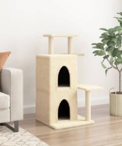 Arbre à chat avec griffoirs en sisal crème 97 cm