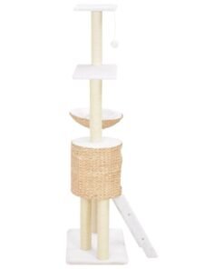 Avec cet arbre à chat fait à la main, vos chats peuvent griffer, se percher, grimper et aussi se détendre à leur guise. Grâce à son design mignon et compact, cet arbre à chat s’adaptera parfaitement à toute décoration. L’arbre à chat donnera aussi à vos petits amis la chance de s’étirer et de faire de l’exercice, surtout pendant les mois froids d’hiver, quand ils sont coincés à l’intérieur. Les griffoirs sont enveloppés dans une corde de sisal, ce qui est extrêmement confortable et pratique pour vos amis félins pour aiguiser leurs griffes. De plus, notre arbre à chat est conçu avec 1 maison confortable pour que votre chat puisse faire une sieste ou se reposer. En outre, il dispose également de plates-formes d’observation. Cet arbre à chat en herbiers marins est facile à assembler et à entretenir.