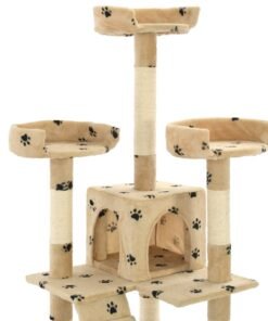 Arbre à chat et griffoirs en sisal 170 cm Beige Motif de pattes