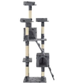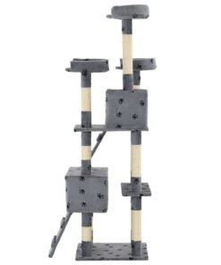 Donnez à vos amis félins le goût du luxe avec notre arbre à chat rempli de fonctionnalités ! Cette aire de jeu pour chats à plusieurs étages possède un cadre robuste recouvert de peluche douce et confortable et constitue le refuge parfait dans lequel vos chats peuvent se gratter, grimper, se percher, se cacher et se reposer. Vos amis félins peuvent aiguiser leurs griffes sur les poteaux à gratter enveloppés dans une corde de sisal, ce qui leur fournit un bon débouché pour leur instinct de gratter. Ils apprécieront également de se poursuivre en sautant dans ce centre de jeu amusant. Quand ils se seront suffisamment amusés, vos petits amis adoreront se reposer sur les plates-formes supérieures où ils auront une meilleure vue. Ils peuvent également se cacher dans les maisons confortables pour faire une sieste. Avec toutes ces fonctionnalités amusantes, cette tour pour chats deviendra le lieu de détente préféré de vos amis à quatre pattes ! L’arbre à chat est facile à assembler.