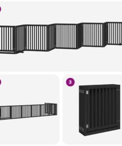 Barrière pour chien porte pliable 10panneaux noir bois peuplier