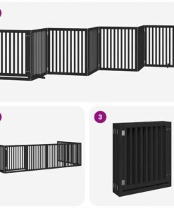 Barrière pour chien porte pliable 8 panneaux noir bois peuplier
