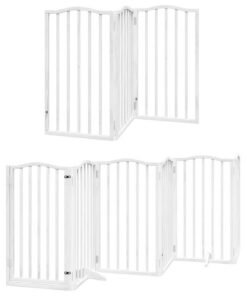 La barrière pour chien place votre animal dans une zone d’activité fixe, ce qui peut assurer sa sécurité et vous empêcher d’être dérangé. Matériau durable : la barrière pour chien est fabriquée en bois de peuplier avec une peinture à base d’eau, ce qui la rend durable, résistante et facile à nettoyer. Facile à utiliser : la barrière pour chien ne nécessite pas d’installation ni de perçage et n’endommage pas votre maison. Cette barrière pour chien peut être entièrement pliable lorsqu’elle n’a pas de pieds, ce qui la rend facile à transporter et à ranger dans le placard ou ailleurs. Conception pratique : la barrière pour chiens est équipée de deux pieds robustes qui assurent sa stabilité et permettent de l’ajuster facilement. De plus, elle comprend un panneau de porte et est équipée de serrures, offrant une sécurité et une commodité accrues pour vous et vos animaux de compagnie. Utilisations multiples : cette barrière pour chien peut empêcher efficacement vos animaux de compagnie de sauter par-dessus et de passer à travers. Par conséquent, elle est parfaite pour assurer la sécurité de vos animaux de compagnie dans le salon, la cuisine, les escaliers et la porte d’entrée.