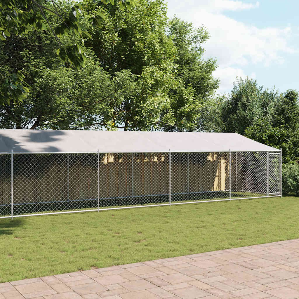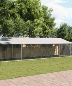 Cage pour chien avec toit et porte gris 12x2x2m acier galvanisé