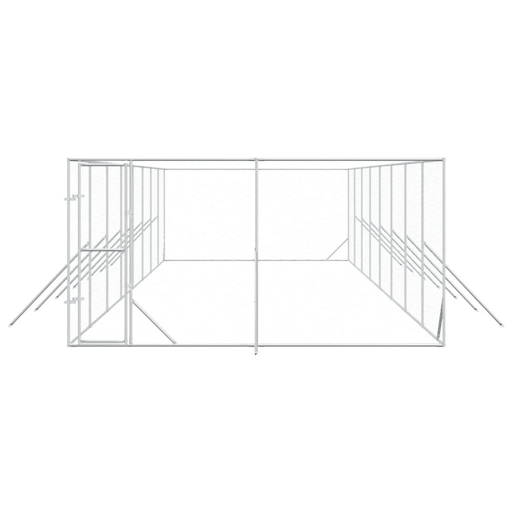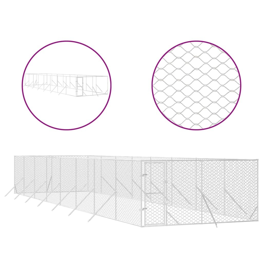 Chenil d’extérieur pour chiens argenté 4x16x2 m acier galvanisé