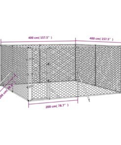 Chenil d’extérieur pour chiens argenté 4x4x2 m acier galvanisé