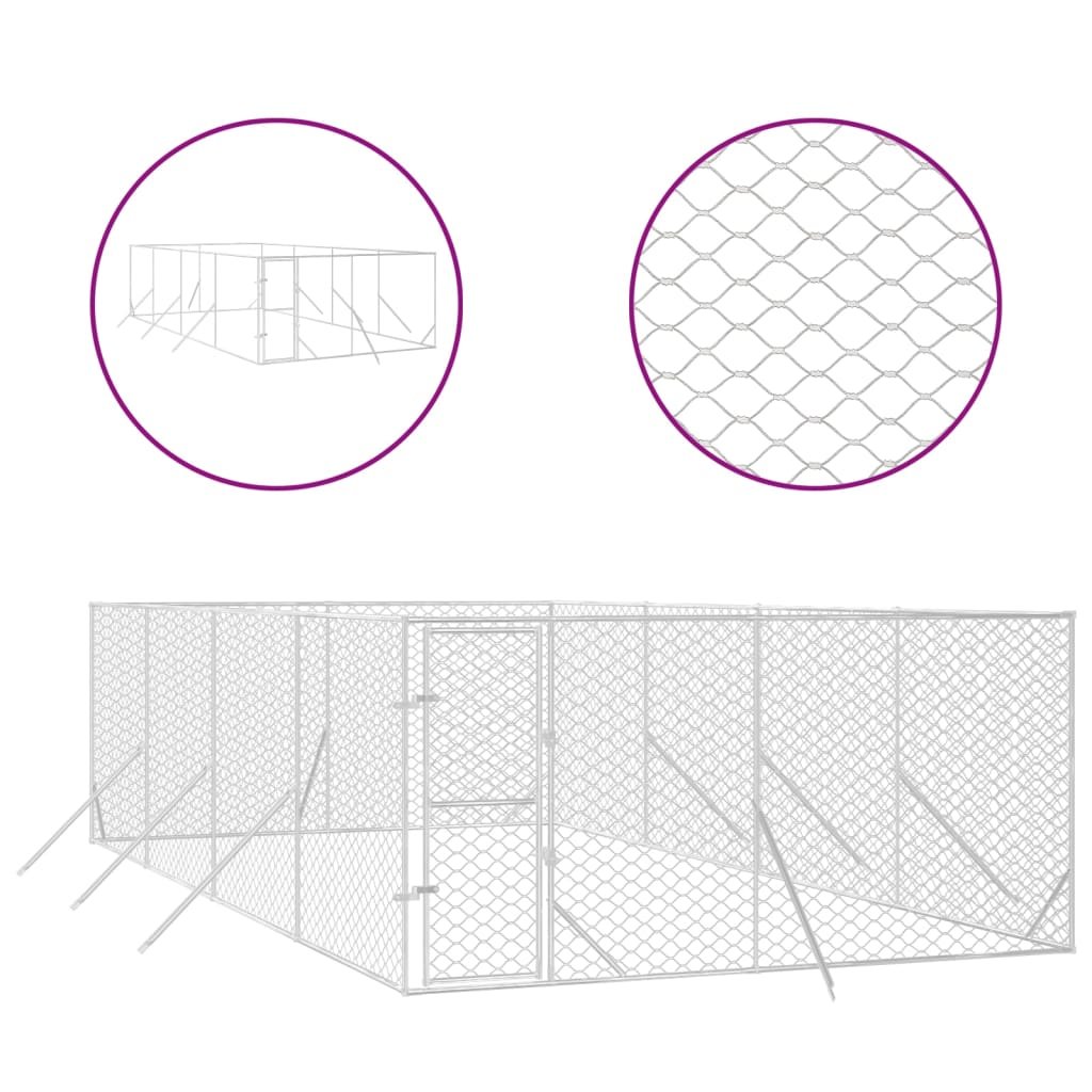 Chenil d’extérieur pour chiens argenté 4x8x2 m acier galvanisé