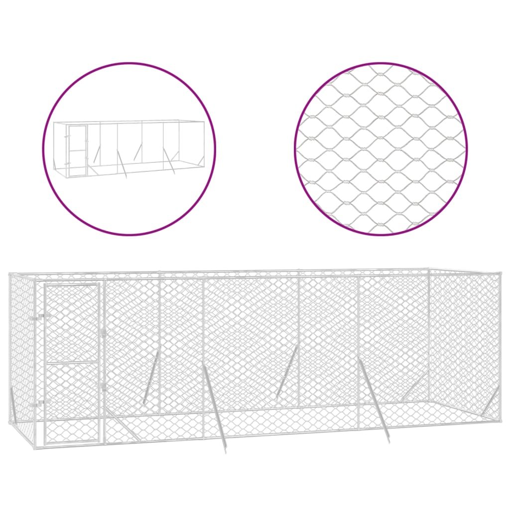 Chenil d’extérieur pour chiens argenté 6x2x2 m acier galvanisé