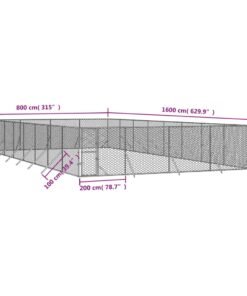Chenil d’extérieur pour chiens argenté 8x16x2 m acier galvanisé