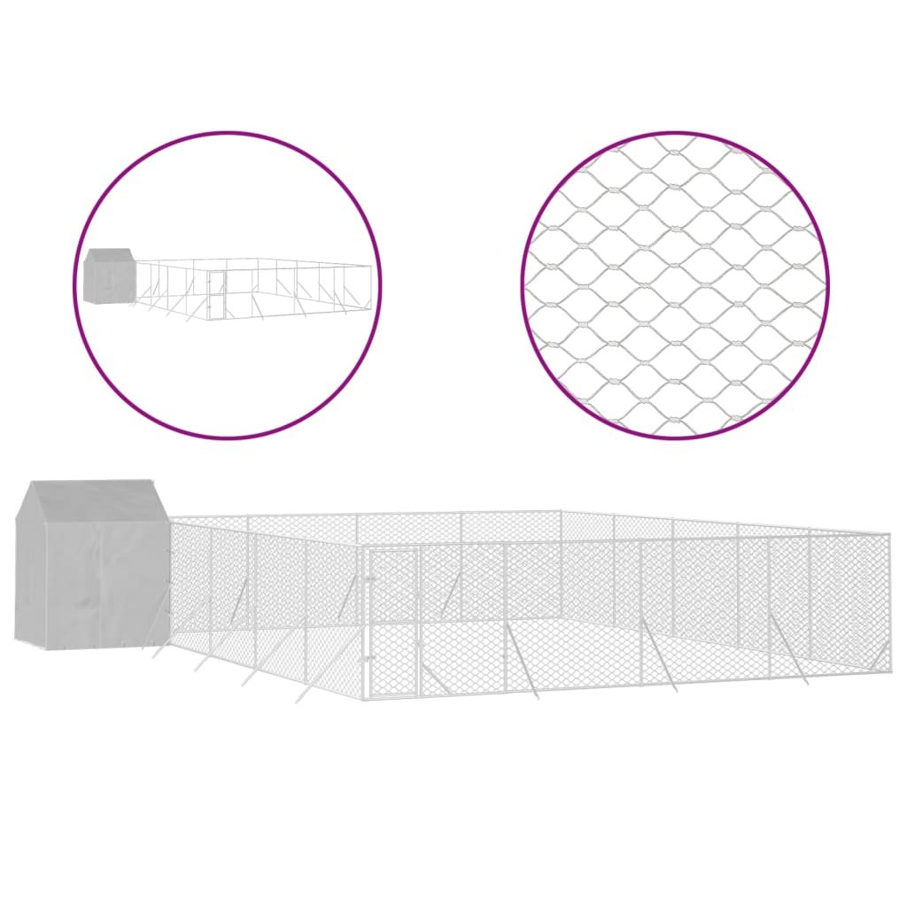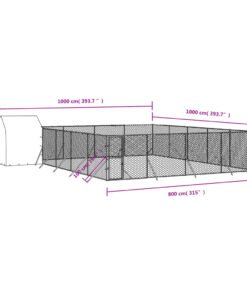 Chenil d’extérieur pour chiens avec toit argenté 10x10x2,5 m