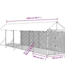 Chenil d’extérieur pour chiens avec toit argenté 2x10x2,5 m