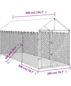 Chenil d’extérieur pour chiens avec toit argenté 2x6x2,5 m