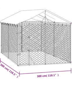 Chenil d’extérieur pour chiens avec toit argenté 3x3x2,5 m