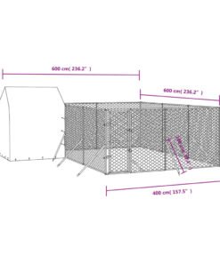 Chenil d’extérieur pour chiens avec toit argenté 6x6x2,5 m