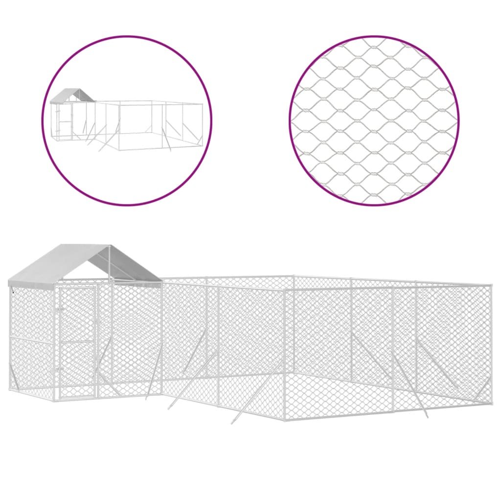Chenil d’extérieur pour chiens avec toit argenté 6x6x2,5 m