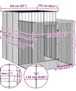 | Couleur | anthraciteMatériau : acier galvaniséDimensions totales : 165 x 251 x 181 cm (L x l x H)Niches pour chien :Dimensions extérieures : 165 x 153 x 181 cm (L x l x H)Dimensions intérieures : 156 x 142 x 178 cm (L x l x H)Taille de l'entrée : 47 x 120 cm (L x H)Cour étendue :Dimensions extérieures : 157 x 103 x 154 cm (L x l x H)Dimensions intérieures : 154 x 100 x 151 cm (L x l x H)Dimensions de la porte : 57 x 145 cm (L x H)Taille de maille : 50,8 x 25,4 mmL'assemblage est requis |