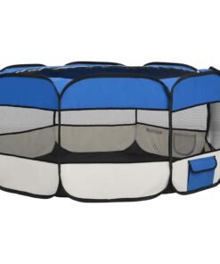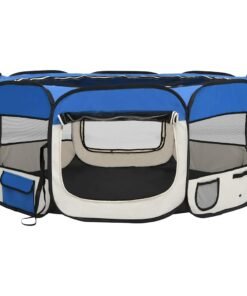 Parc pliable pour chien avec sac de transport Bleu 145x145x61cm