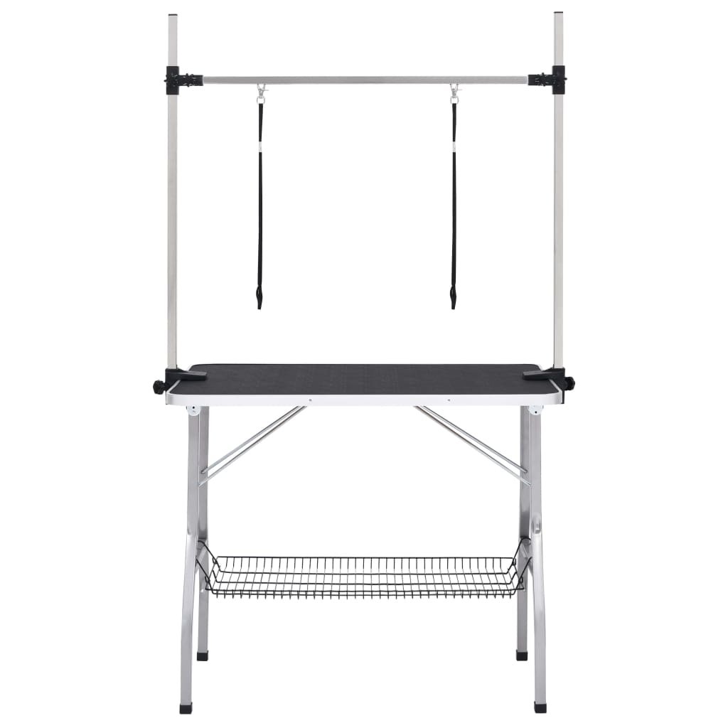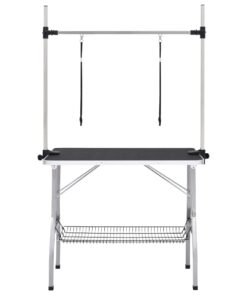 Table de toilettage réglable de chiens avec 2 boucles et panier
