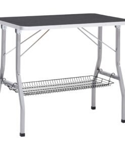 | Couleur | noir et argentéMatériau : acier inoxydable, acier, bois d'ingénierie, aluminiumDimensions de la table : 90 x 60 x 76 cm (L x l x H)Taille du cadre avec boucle : 90 x 38,5 cm (l x H)Avec 2 boucles de toilettage assortiesAvec un panierPliable pour un rangement facileL'assemblage est requis |